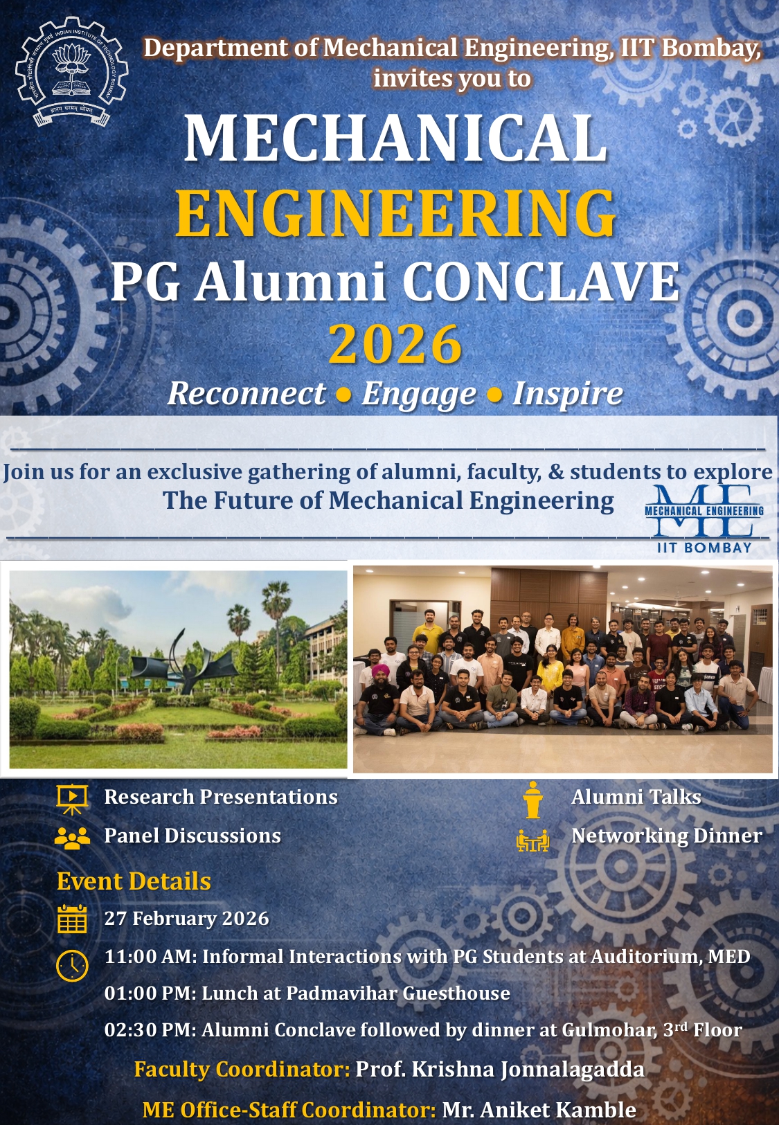 Back to Events MED PG Alumni Reunion 2026 Venue: ME Auditorium and Gulmohar Banquet Hall (3rd Floor) February 27, 2026